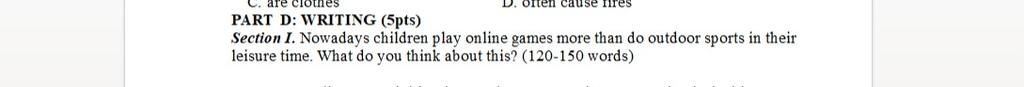 Section I. Nowadays children play online games more than do outdoor sports in their