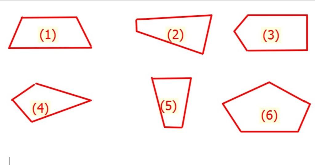 `***` Đáp án `:` Hình `(1) , (5)` là hình thang