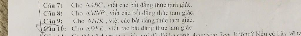 Cho tam giác aBC viết các bất đẳng thức của tam giác