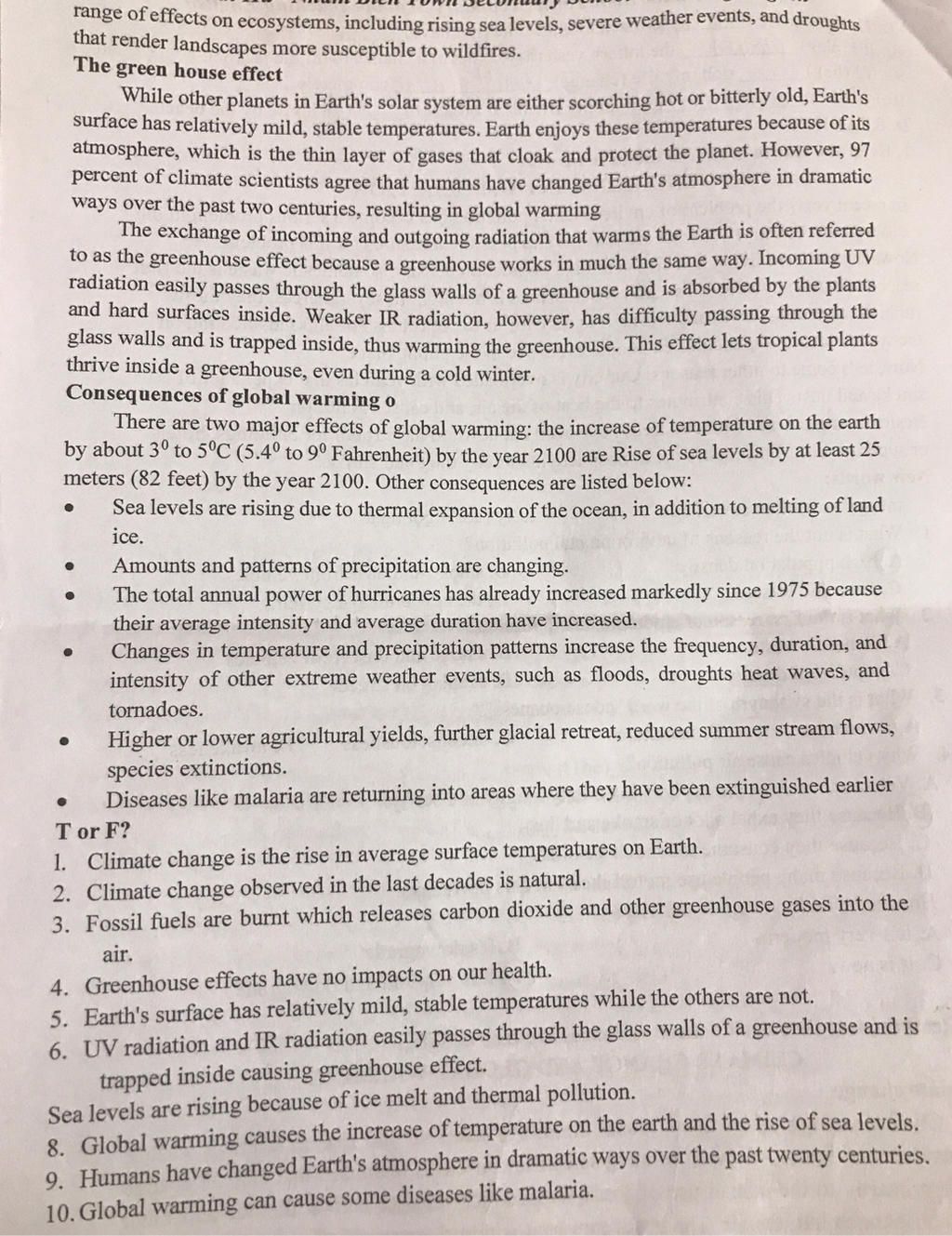 range of effects on ecosystems, including rising sea levels, severe weather events, and droughts