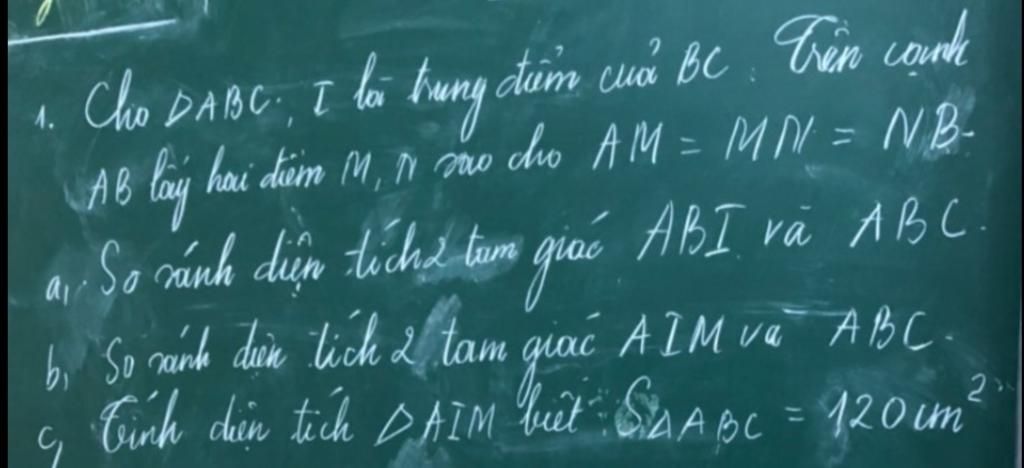 `->`Diện tích tam giác `AIM` nhỏ hơn diện tích tam giác `ABC` `6` lần