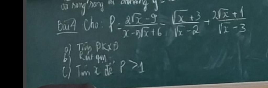 b)P = \dfrac{{2\sqrt x - 9}}{{x - 5\sqrt x + 6}} - \dfrac{{\sqrt x + 3}}{{\sqrt x - 2}} + \dfrac{{2\sqrt x + 1}}{{\sqrt x - 3}}\\