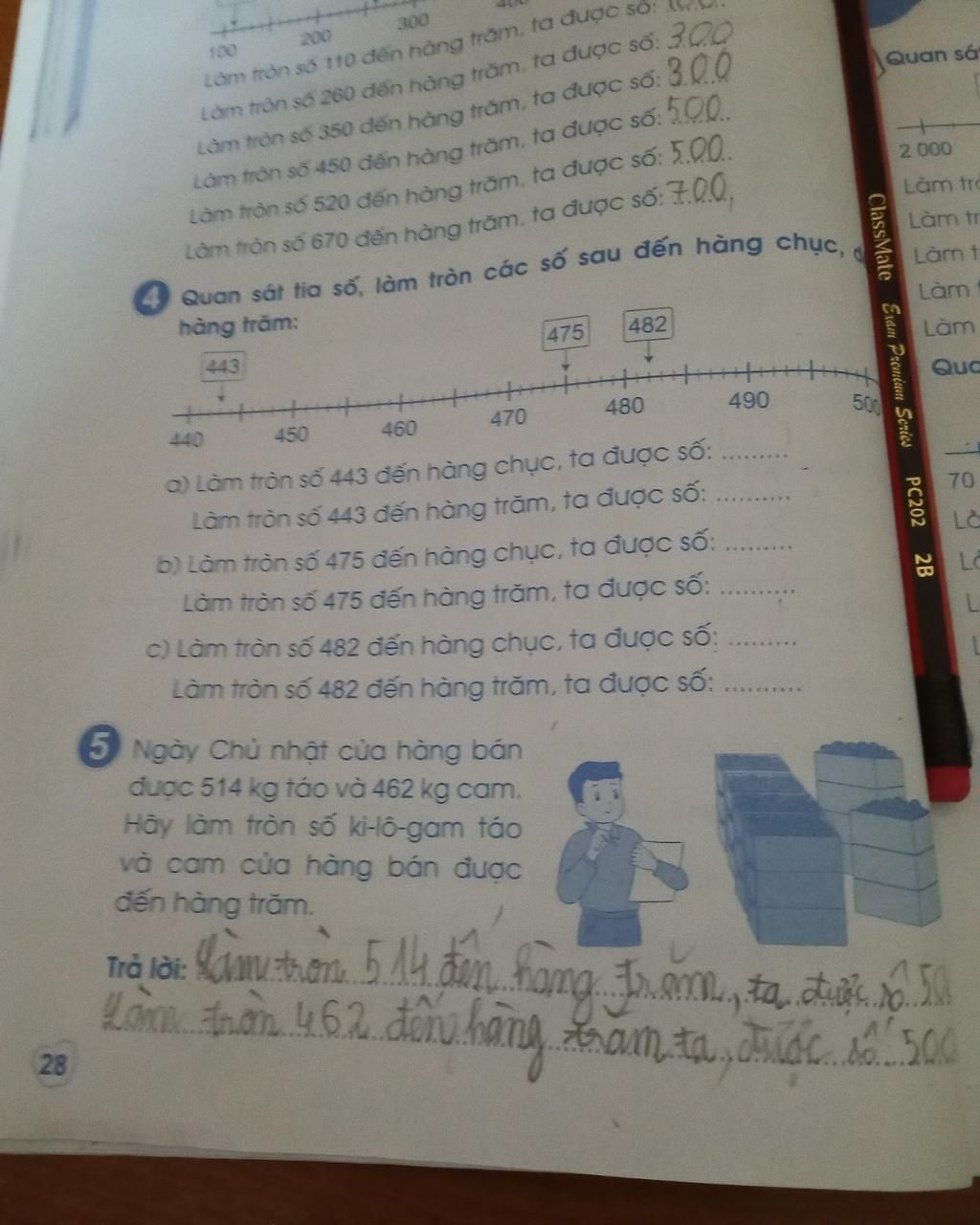 Làm tròn số 450 đến hàng trăm, ta được số: 500.