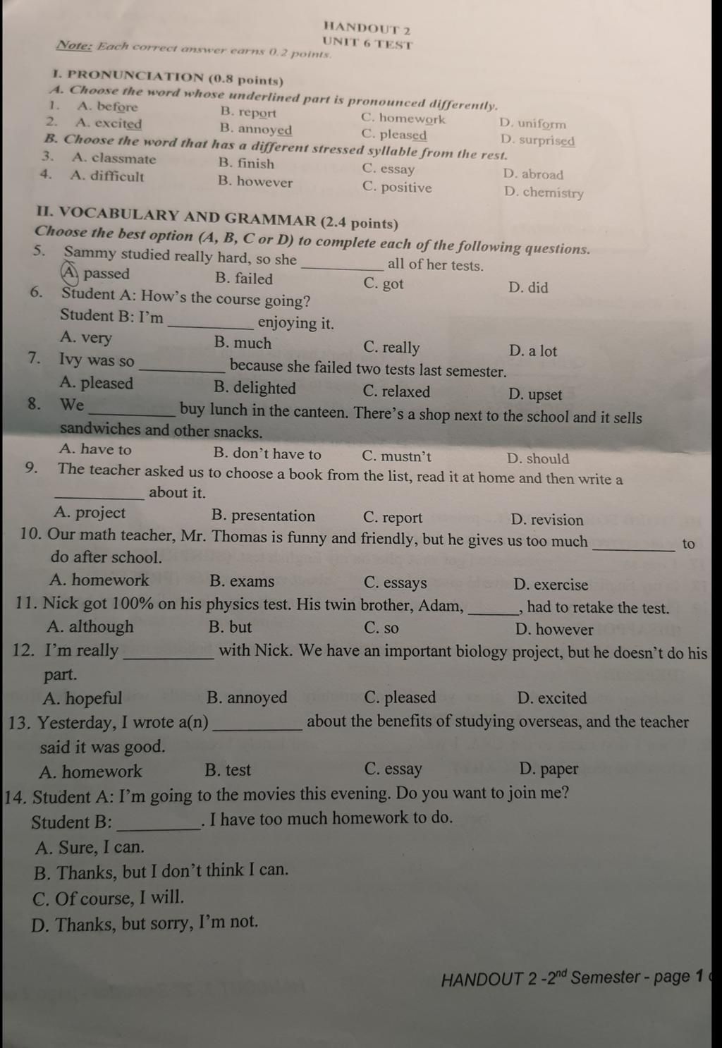 Vui lòng chỉ chọn một câu hỏi