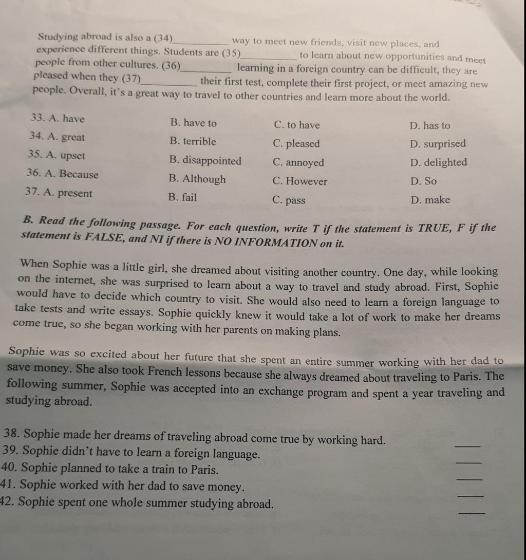 Studying abroad is also a (34)