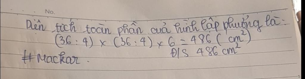 Đáp số : 486 cm²