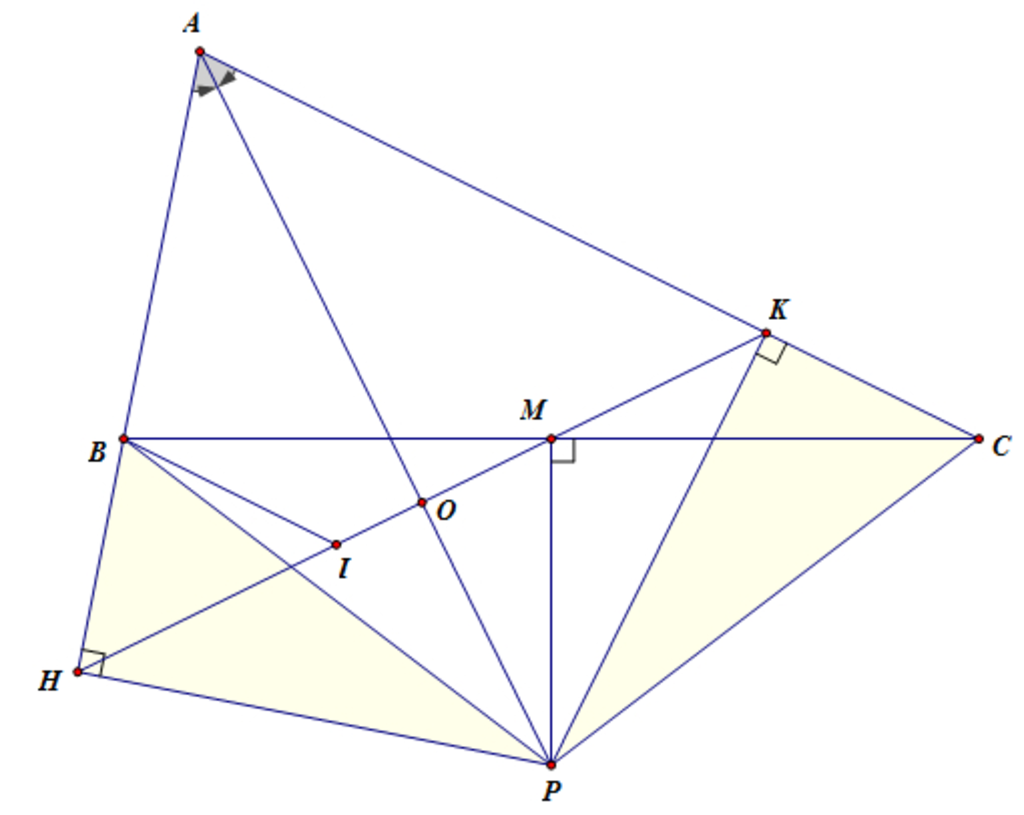 Xét hai tgAPH và tgAPK vuông tại H và K và có : PA (cạnh huyền chung);^HAP = ^KAP (AP phân giác) => tgAPH = tgAPK => PH = PK.