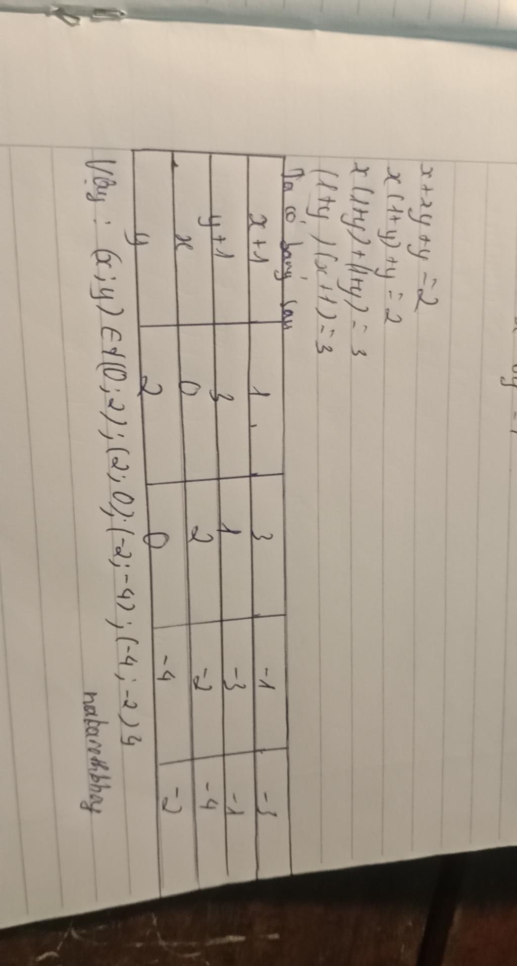 Đáp án: $(x,y)\in\{(0, 2), (2, 0), (-2, -4), (-4, -2)\}$
