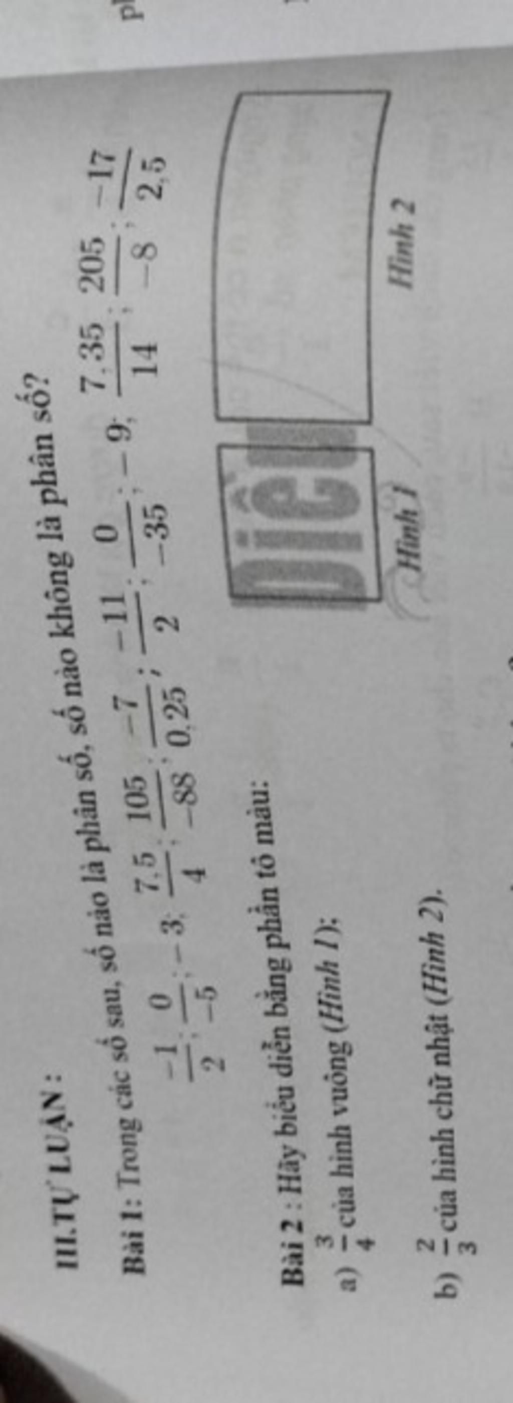 Bài 1: Trong các số sau, số nào là phân số, số nào không là phân số?
