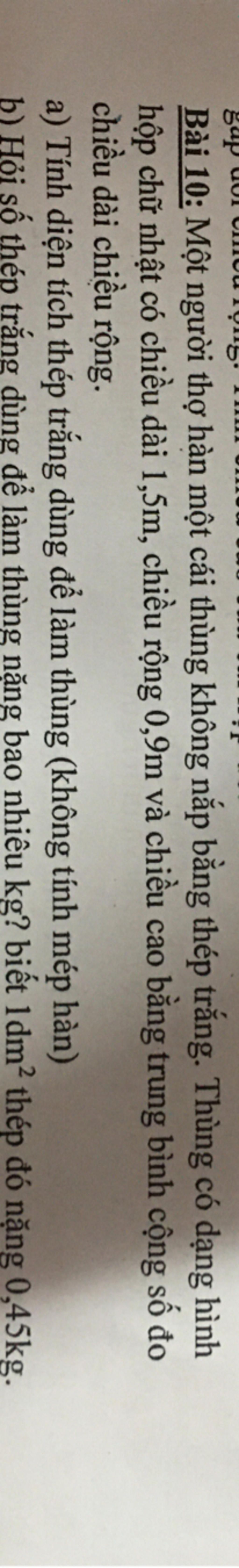 Diện tích thép để làm cái thùng đó là `:`