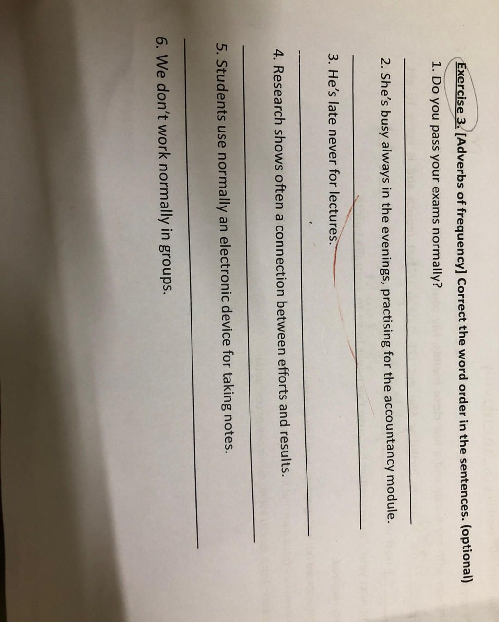 Exercise 3. [Adverbs of frequency] Correct the word order in the sentences. (optional)