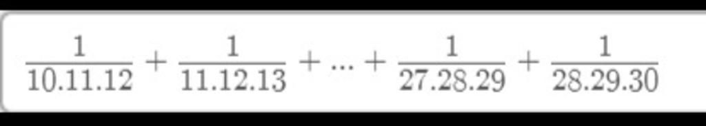 `1/(10.11.12)+1/(11.12.13)+...+1/(27.28.29)+1/(28.29.30)`