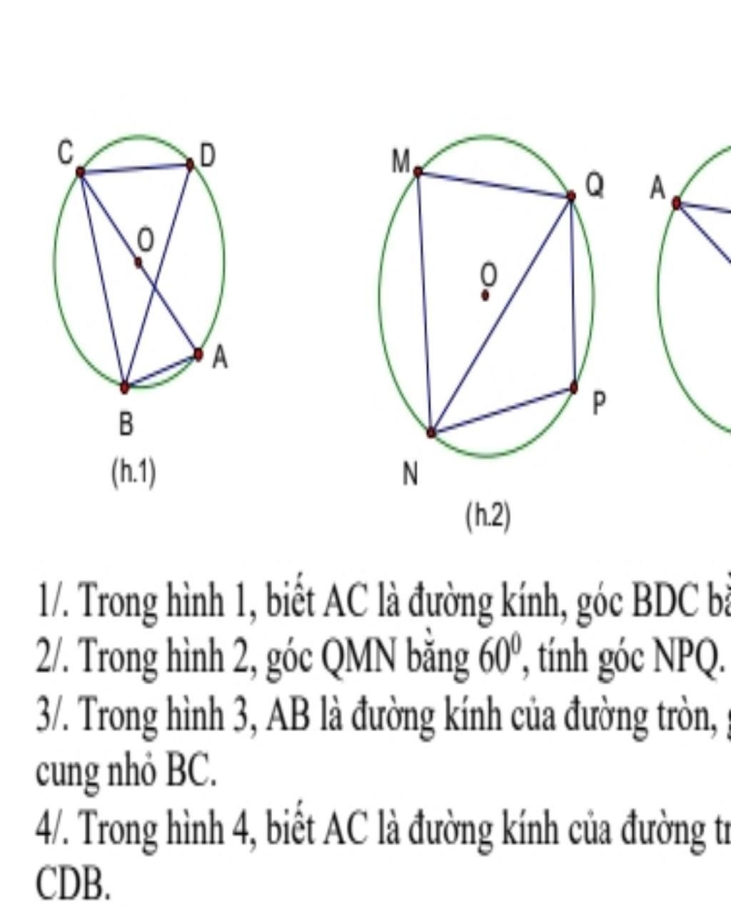 1, trong hình 1 bt AC là đường kính ,góc BDC =60° .Tính góc ACB