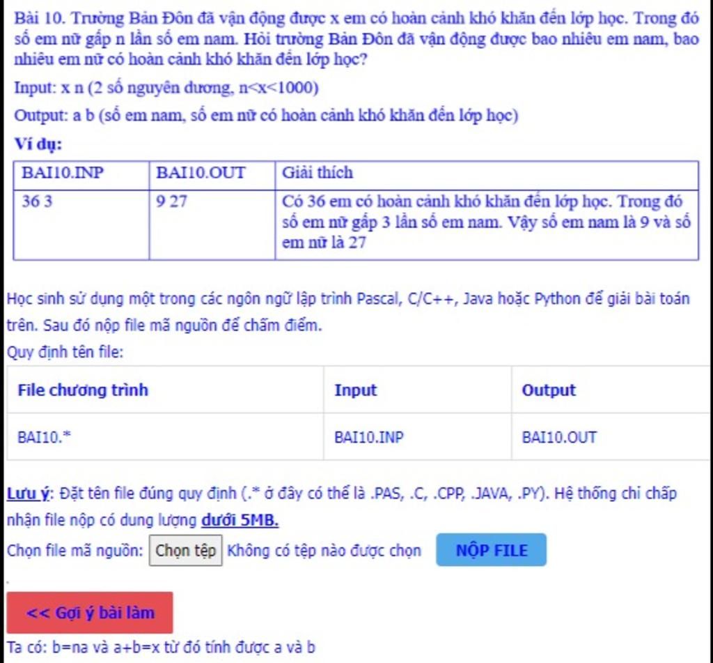 `*` Số em nữ gấp n lần số em nam: b = a × n