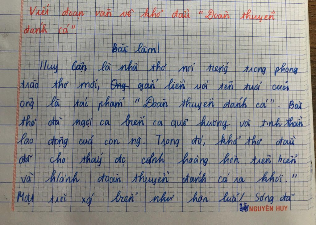 Xuân Diệu đã từng nói: "Thơ hay như ly rượu nồng, cho ta cảm xúc nồng nàn, tha thiết". Huy Cận đã ngợi ca vẻ đẹp bức tranh thiên nhiên đẹp kì vĩ, tráng lệ vào hoàng hôn trên biển ở bài thơ "Đoàn thuyền đánh cá". Bài thơ được viết bằng thể thơ 7 chữ, ngôn ngữ hình ảnh giàu sức gợi, giọng điệu hào hùng, tràn đầy tinh thần lạc quan, sử dụng sáng tạo những BPTT. Qua đó, bài "Đoàn thuyền đánh cá" đã thể hiện được những chuyển biến của nhà thơ Huy Cận: trước Cách mạng tháng 8 và sau Cách mạng tháng 8. Bài thơ "Đoàn thuyền đánh cá" đã trở thành một tác phẩm xuất sắc, để đời của nhà thơ,