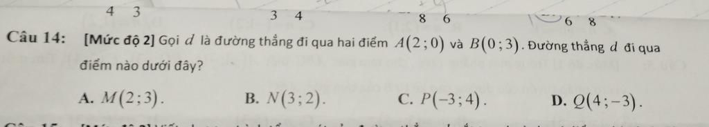 Thay `x=2;y=3` vào phương trình đường thẳng, ta được: