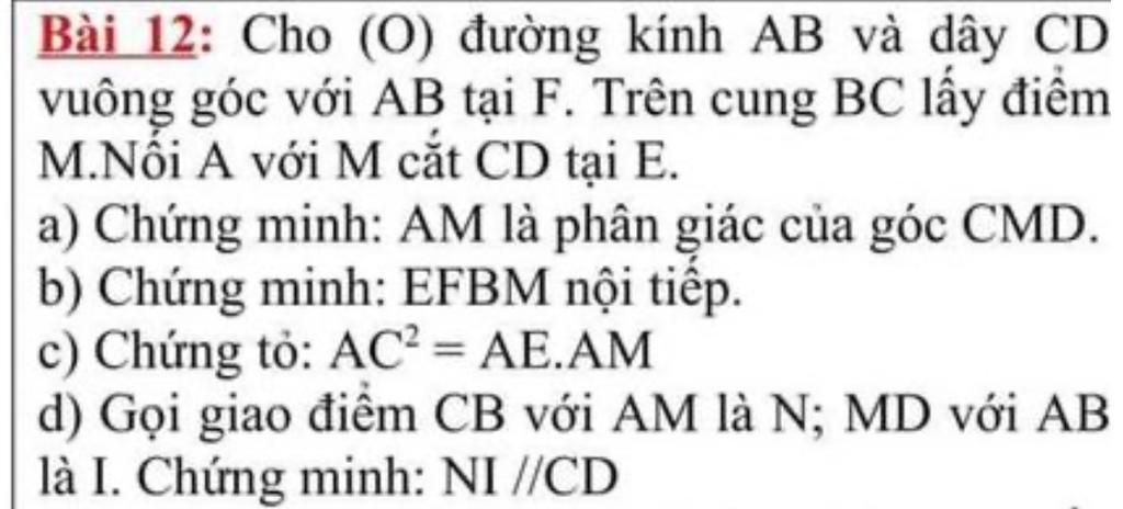 Bài 12: Cho (O) đường kính AB và dây CD