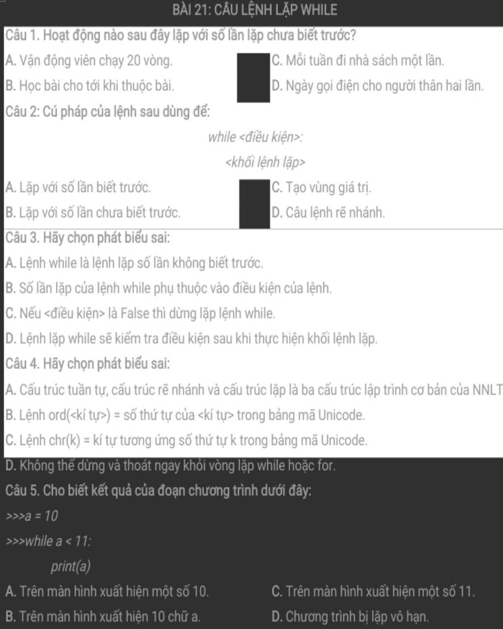 BÀI 21: CÂU LỆNH LẶP WHILE