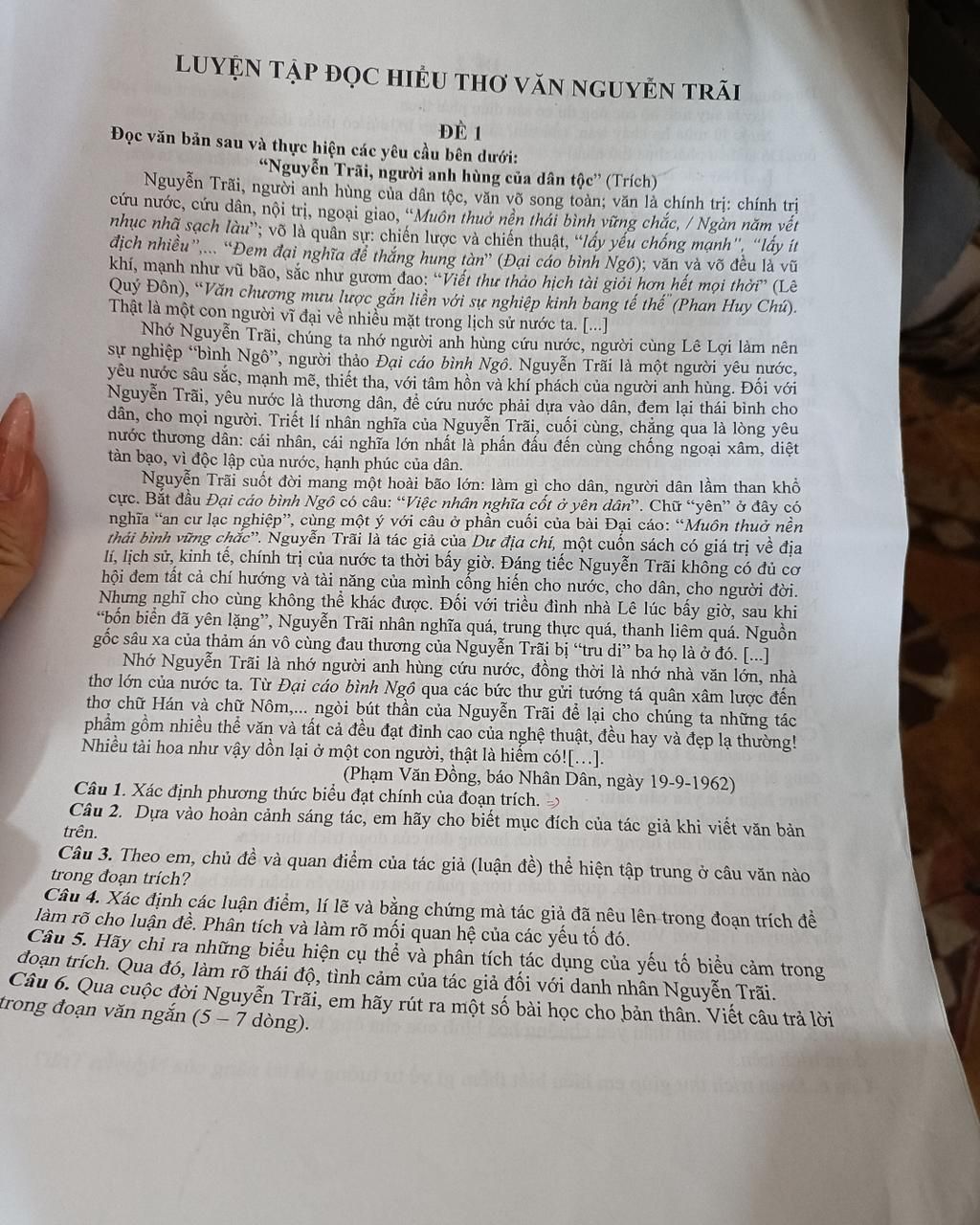 LUYỆN TẬP ĐỌC HIỂU THƠ VĂN NGUYỄN TRÃI
