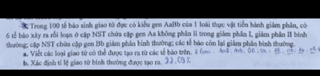 a, Các giao tử có thể được tạo ra: AaB, Aab, B, b, AB, Ab, aB, ab
