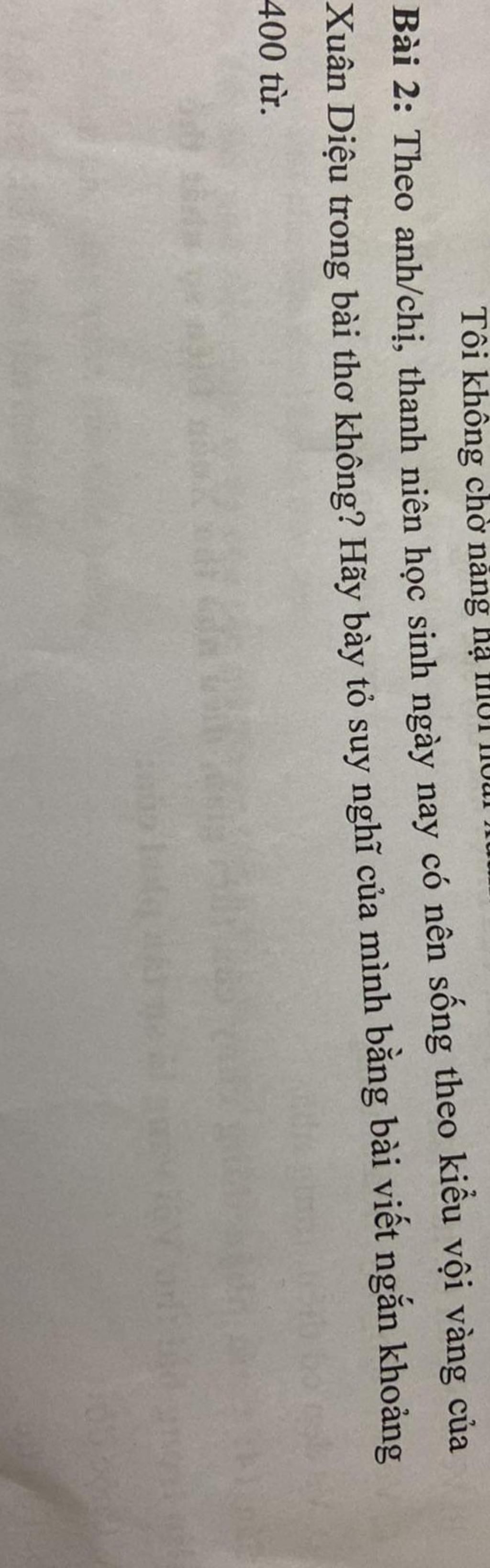 - Dẫn dắt từ quan niệm sống của Xuân Diệu trong bài " Vộ vàng".
