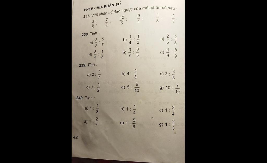 Bài 237 : Viết phân số đảo ngược của mỗi phân số sau :