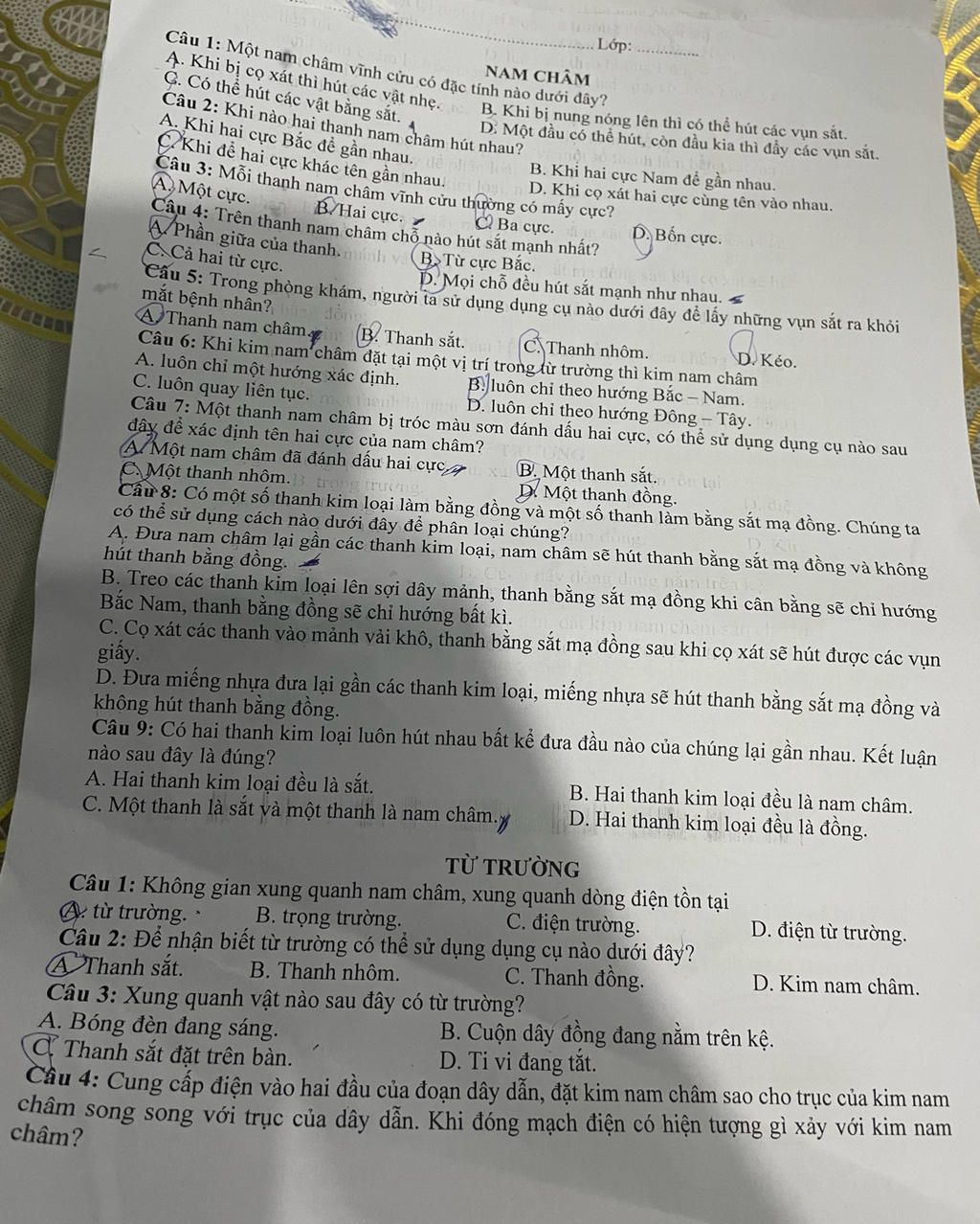 Dựa vào 2 gạch chân, ta có thanh sắt và nam châm