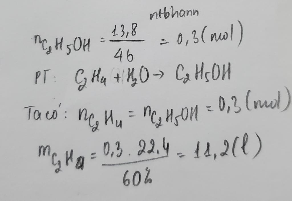 $\rm V_{C_2H_4}=\dfrac{0,3×22,4}{60\%}=11,2(l)$