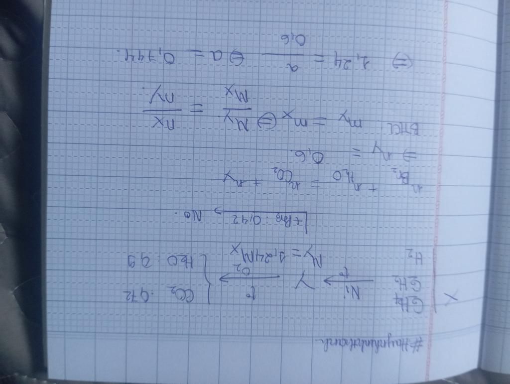 Nung nóng a mol hỗn hợp X gồm etilen , axetilen và Hidro với xúc tác Ni trong bình kín ( chỉ xảy ra phản ứng cộng H2) , thu được hh khí Y có tỉ khối so với X là 1,24.Đốt cháy hết Y , thu được 0,72mol CO2 và 0,9 mol H2O.Mặt khác , Y phản ứng tối đa với 0,42 mol Brom trong dung dịch.Tìm giá trị a.