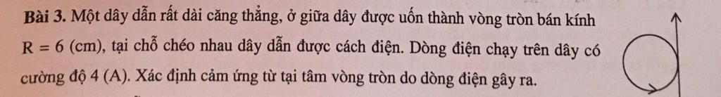 Do đó, cảm ứng từ tại tâm vòng tròn do dòng điện gây ra bằng 6.67 x 10^-5 tesla.