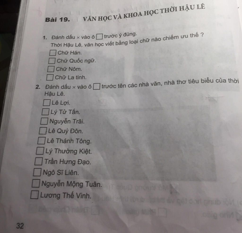 1. Thời Hậu Lê, văn học viết bằng loại chữ Hán chiếm ưu thế.