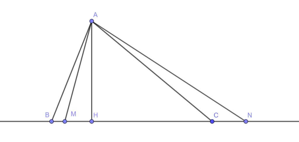 Có $MH,BH,NH$ lần lượt là hình chiếu của $AM, AB, AN$ trên $BC$