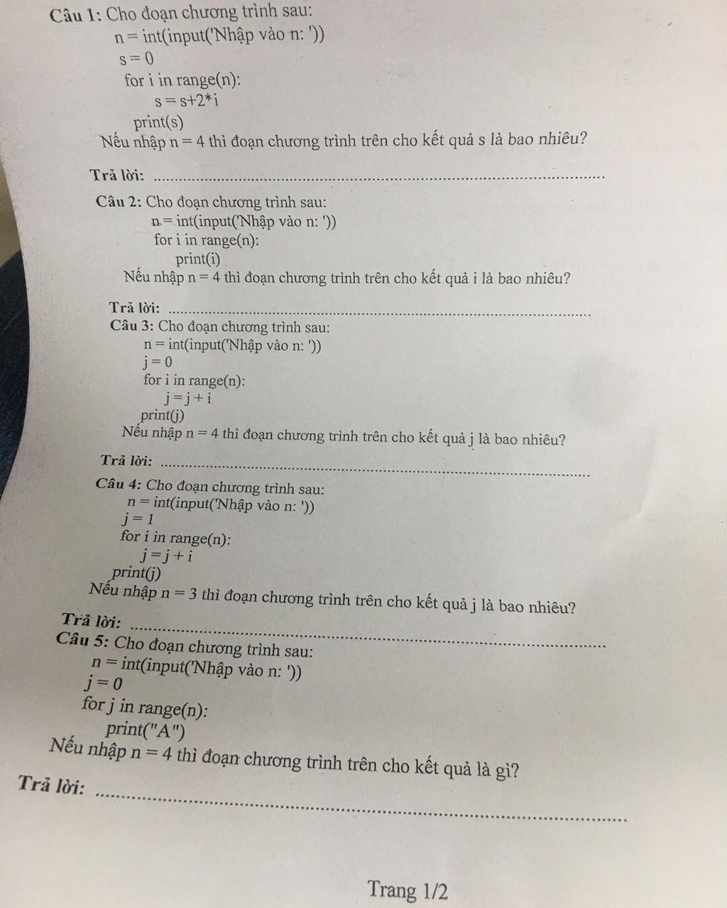 Nếu nhập n = 4 thì đoạn chương trình trên cho kết quả s là bao nhiêu?