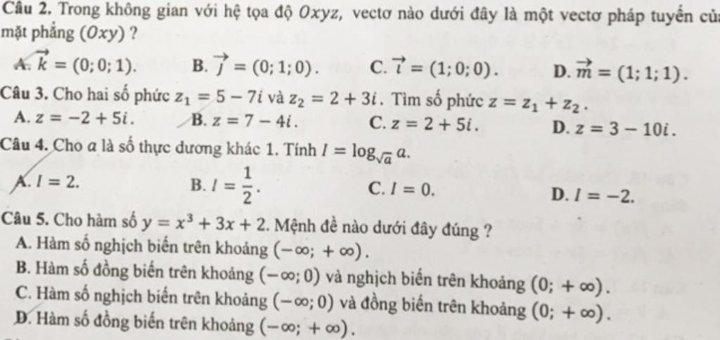 Câu 2. Trong không gian với hệ tọa độ Oxyz,