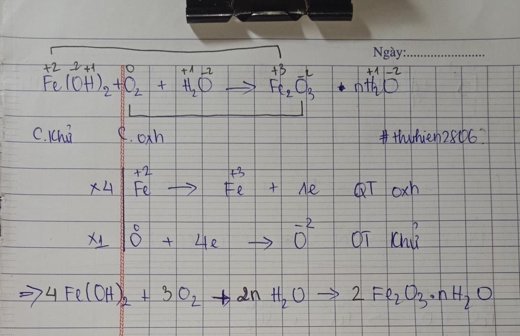 $4Fe(OH)_2+(\frac{2-n}{2})O_2+(2n-4)H_2O \to2Fe_2O_3.nH_2O$