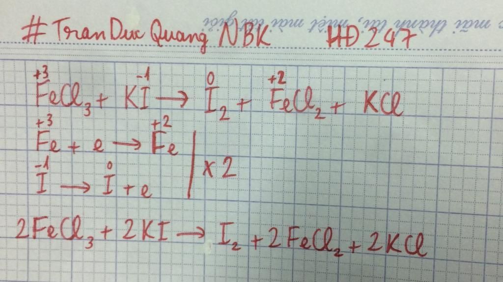 =) các ai đồ hóa làm thế nên học theo Kiểu như này này $\rm 2FeCl_{3}+2KI→I_{2}+2FeCl_{2}+2KCl$