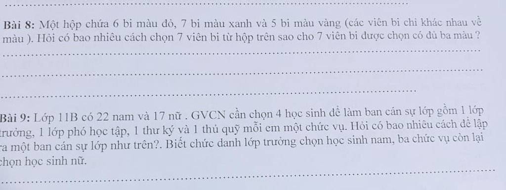 1.Có 18C7=31824 cách chọn 7 viên bi