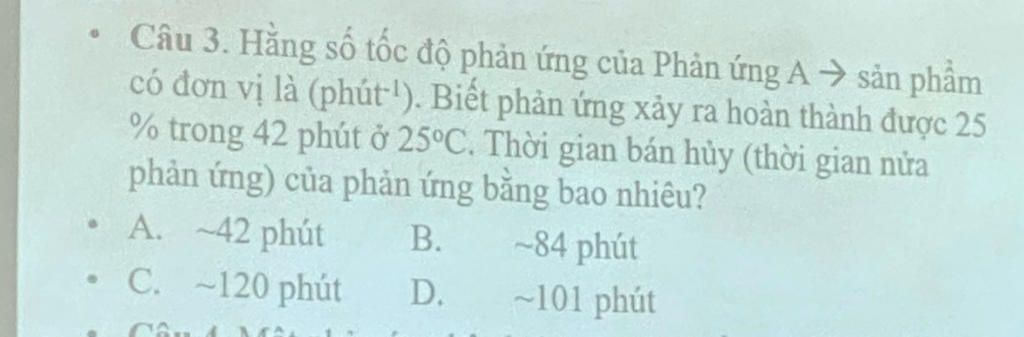 Nếu ban đầu, $[A]_o=C$ thì sau $42'$, $A$ phản ứng $25\%C=0,25C$ nên $[A]=C-0,25C=0,75C$
