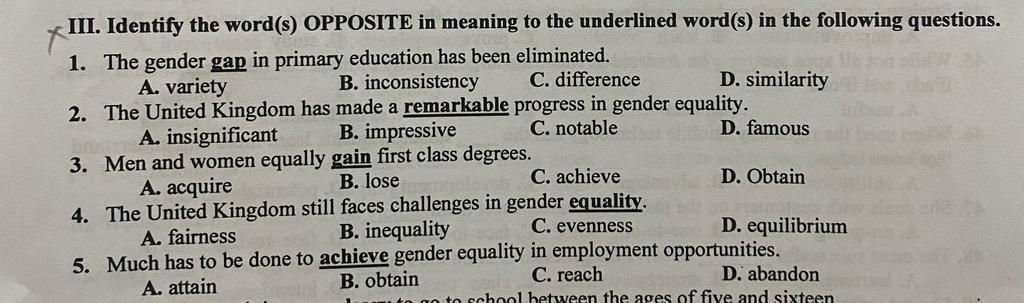 `->` `E`quality(n): Sự bình đẳng >< Inequality(n): Sự bất bình đẳng
