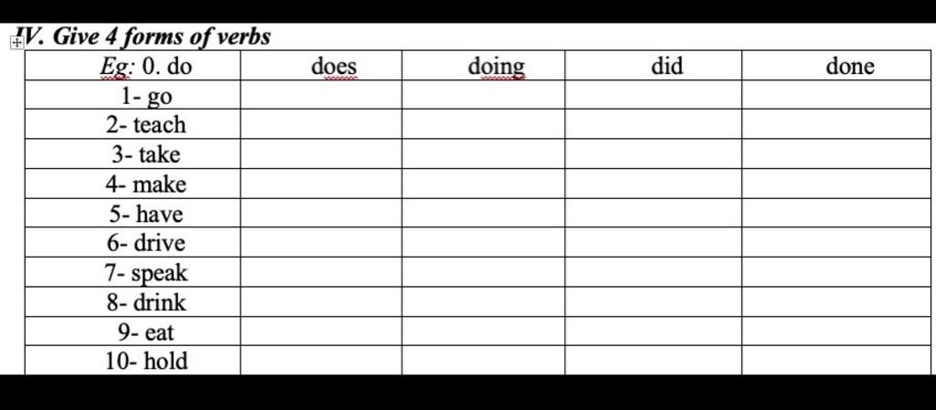 `-` Cột thứ nhất là chia động từ tương ứng với ngôi thứ `3` số ít của thì HTĐ>
