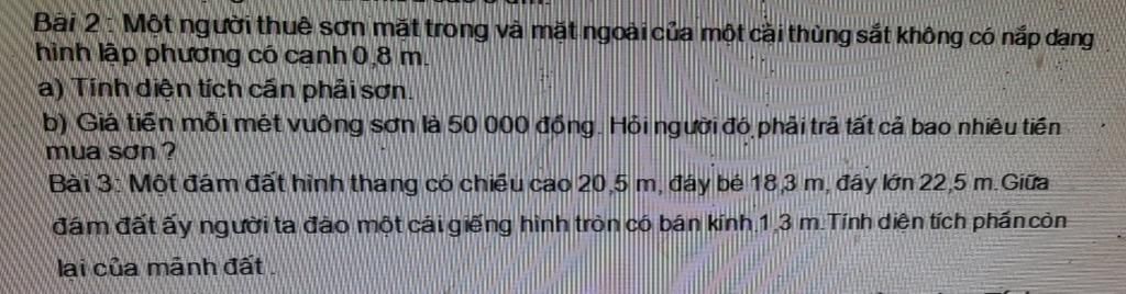 Bài 2 . Một người thuê sơn mặt trong và mặt ngoài của một cái thùng sắt không có nắp dạng