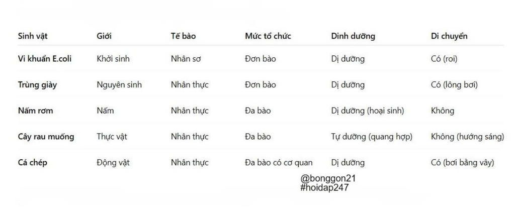 $\text{+}$ Con cá chép thuộc giới động vật. Cấu tạo tế bào của chúng là tế bào nguyên sinh, tương tự như hầu hết các loài động vật khác. Mức độ tổ chức của cơ thể cá chép là thấp, với chỉ có một số bộ phận chức năng như mắt, ruột, gan và phổi. Chế độ dinh dưỡng của các loài cá chép phần lớn là ăn thực vật như tảo và cái bùn, và một số loài cũng ăn thịt nhỏ. Khả năng di chuyển của cá chép chủ yếu là bơi, với sự giúp đỡ của vây và đuôi để điều chỉnh hướng di chuyển và tốc độ bơi.