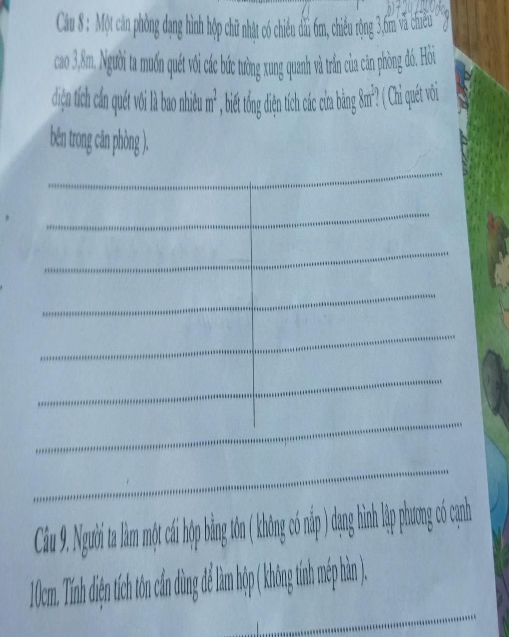 Câu 8: Một căn phòng dạng hình hộp chữ nhật có chiều dài ốm, chiều rộng 36m và chiều