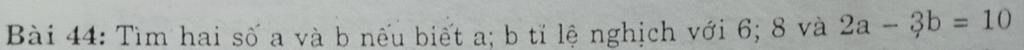 Vì `a,b ` tỉ lệ nghịch với `6,8 `
