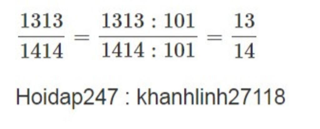 $\dfrac{1313}{1414}$ $=$ $\dfrac{1313 : 101}{1414 : 101}$ = $\dfrac{13}{14}$ .