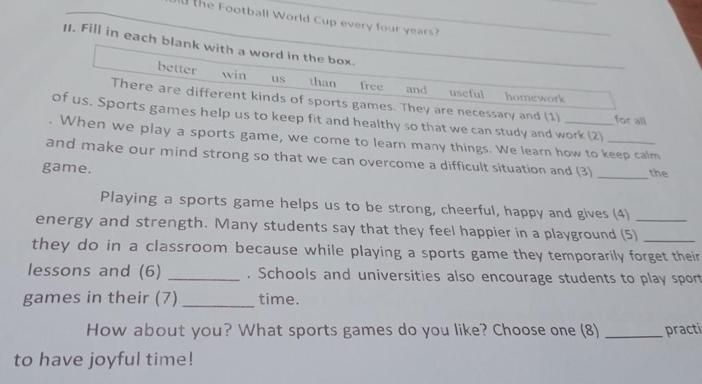 of us. Sports games help us to keep fit and healthy so that we can study and ...