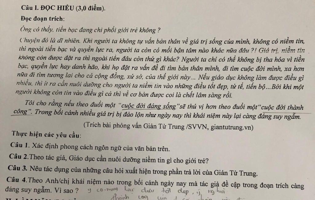 Câu 2: Giáo dục cần nuôi dưỡng niềm tin vào những điều tốt đẹp, tử tế, tiến bộ cho giới trẻ.