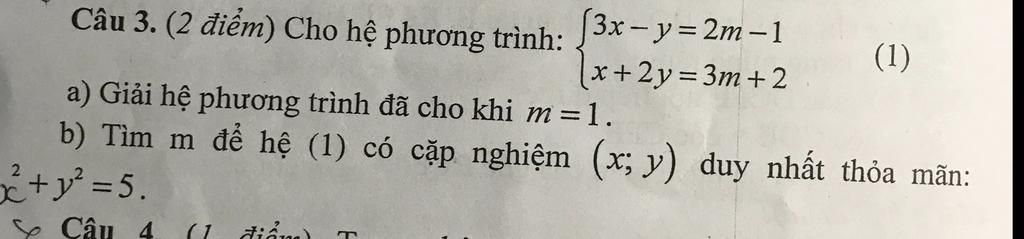 $\begin{cases}\rm 3x-y=2m-1(1)\\\rm x+2y=3m+1(2)\end{cases} \rm \\\xrightarrow{\rm nhan\ hai\ ve\ cua\ (1)\ cho\ 2}6x-2y=4m-2\\\xrightarrow{(1)+(2)}7x=7m+7(3)\\hpt(2)(3):\begin{cases}\rm x=m+1\\\rm x+2y=3m+1\end{cases} \\\Leftrightarrow \begin{cases}\rm x=m+1\\\rm m+1+2y=3m+1\end{cases}\\\Leftrightarrow \begin{cases}\rm x=m+1\\\rm y=m\end{cases}$