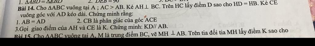 Góc HAD + góc HDA=90° Góc DCE + góc EDC= 90° Mà góc HDA=góc EDC ( đối đỉnh) => HAD = DCE