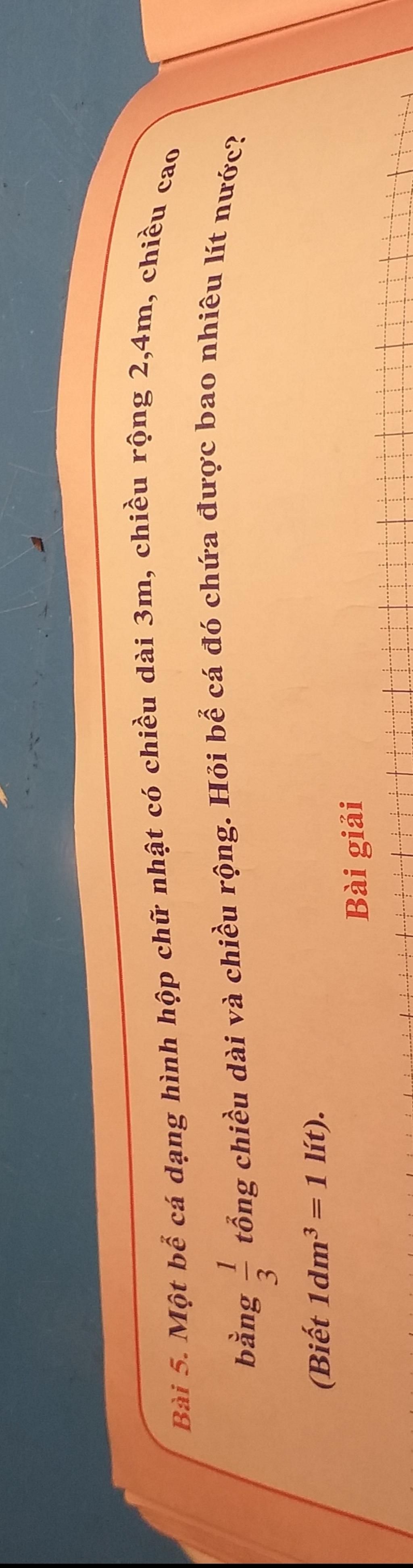 Vậy bế cá đó chứa được 12960 lít nước